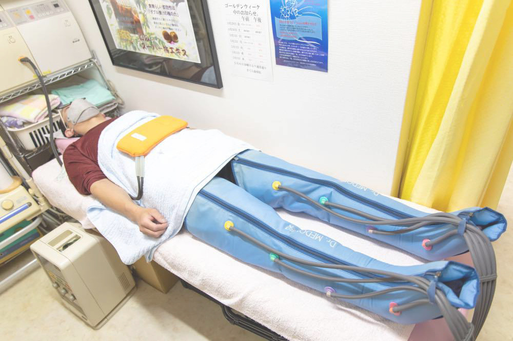 保険診療の他に自費にてマッサージが受けられます。20分までは当日予約なしでも受けていただけますが20分を超えるマッサージを 希望される方は予約をお願いします。辛い場所を指定していただければ集中的に施術いたします。当院の施術者は強くマッサージが出来ますのでご希望があれば受付にお申し出ください。ジャージ等の着替えをご用意しております、お気軽にお申し出ください。おすすめはヘッド、フェイスマッサージです、こちらは首の付け根から頭頂部(頭の上の部分)まで、しっかりとマッサージをさせていただきます。長時間のパソコンでの作業で目が疲れてしまった方や、携帯の見過ぎ等にてスマホッ首になってしまった方が多く利用されます。足つぼマッサージも当院ではご利用できます。すごく痛い物ではなく気持ちよい程度の痛みですのでご安心ください。